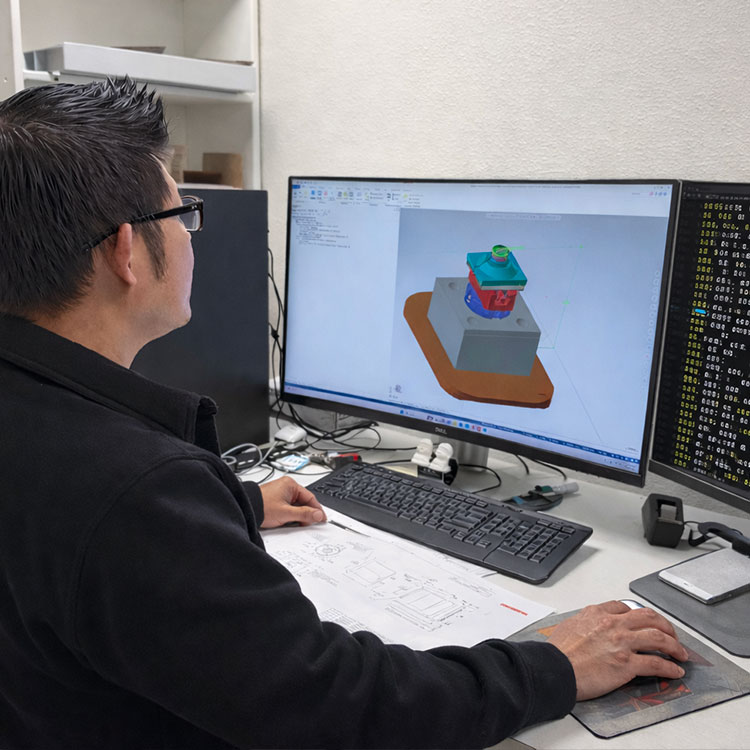 Our programming department uses the latest Mastercam and CIMCO Edit to convert your drawings into three-dimensional renderings for fast, error-free setups. For our more involved mill-turn projects, we use ESPIRIT.