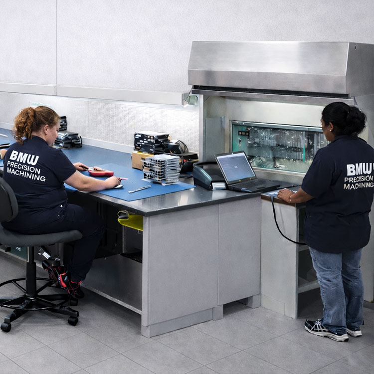Hand deburr for burr-free parts and tumbling capabilities for smooth finishes. Our visual inspection helps to ensure all parts are individually cared for and handled. Our newly added centrifugal tumbler adds unmatched speed to our high-volume parts, deburring and polishing batches of parts in a matter of mere minutes. Our Mitutoyo Crysta 7106 has state-of-the-art inspection programming for quick setups and error-free inspections.